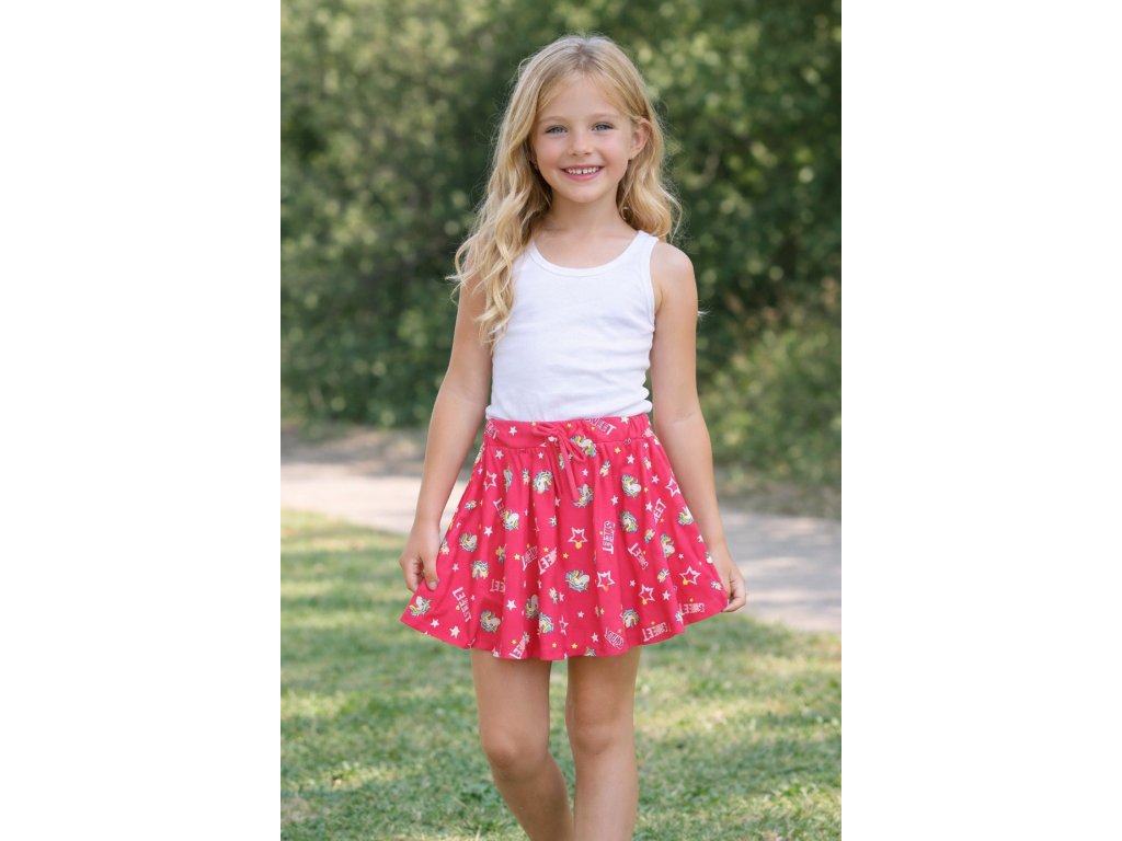 Holčičky milují kouzla a tajemno – a sukýnka s bájným jednorožcem je pro ně tou pravou volbou. Bohatě řasený střih nabízí dostatek látky a krásně se točí, výrazná růžová barva zaujme na první pohled.