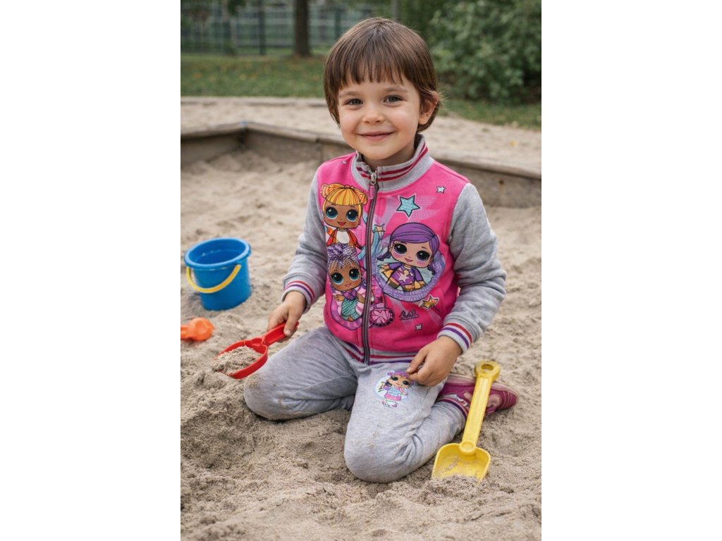 Velmi povedená tepláková souprava LOL Surprise potěší všechny malé parádnice. Líbivá kombinace šedé a výrazné růžové barvy působí moderně a hravě. Mikina má zapínání na zip s 3D ozdobou na jezdci ve tvaru srdíčka, rukávy i pas jsou zakončeny pružnými manžetami s barevnými proužky. Tepláky mají v pase pohodlnou gumu s funkční šňůrkou pro lepší přizpůsobení. Celá souprava je krásně hřejivá a z vnitřní strany opatřena jemným česaným chloupkem pro maximální komfort.