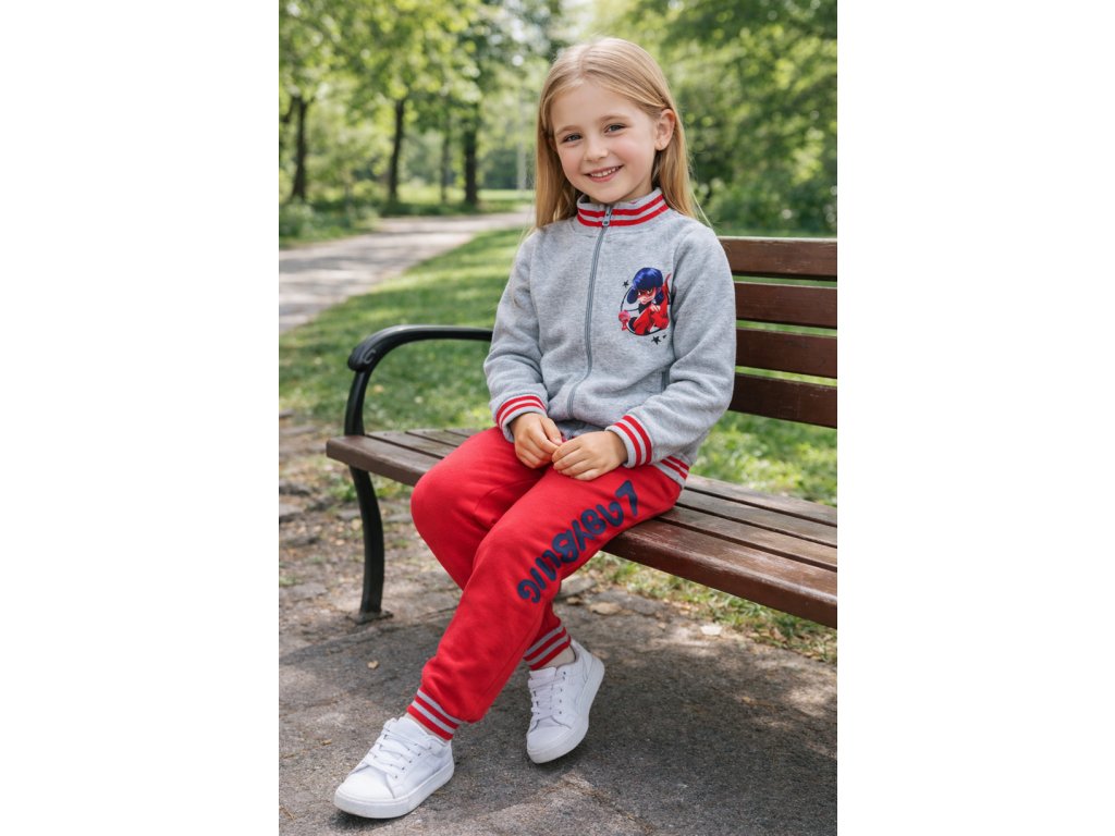 Dívčí tepláková souprava s motivem Kouzelné berušky. Mikina má boční kapsičky, ukončena do praktických nápletů. Tepláky mají pružný pas, taktéž ukončeny do nápletů. Souprava je velmi příjemná a pohodlná.