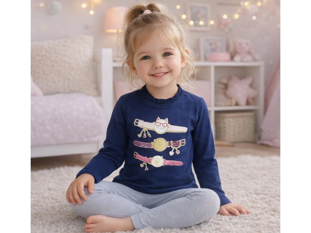 Dívčí tričko s dlouhým rukávem a motivem hodinek