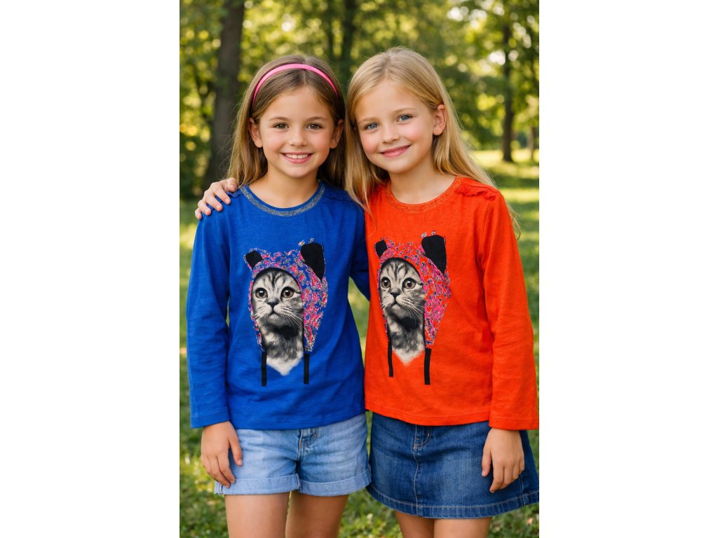 Je tu někdo, kdo miluje kočičky? Právě pro takové je toto tričko z BIO bavlny s krásným kočičím motivem. Tričko zdobí jemné volánky v oblasti ramen a látková aplikace roztomilého mourečka. Materiál je příjemně pružný, barvy výrazné a syté.
