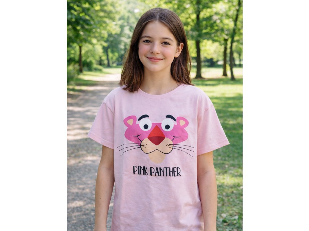 Krásné bavlněné tričko pro větší slečny s vtipným motivem Růžového pantera. Volnější střih zajišťuje pohodlí při každodenních aktivitách – do školy, na doma i na sport. Vyrobeno z kvalitní bavlny, která je příjemná a šetrná k dětské pokožce.
