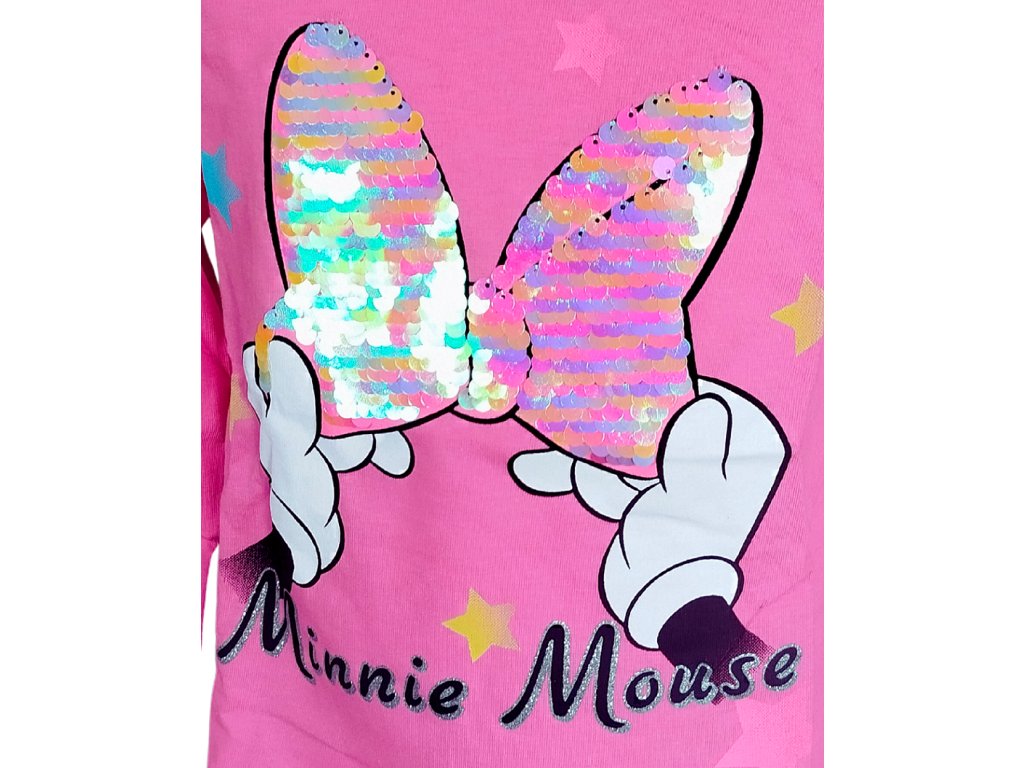 Úžasné bavlněné tričko s myškou Minnie patří mezi velmi oblíbené kousky mezi holkami. Je nejen pohodlné, ale i krásně zdobené – mašle Minnie je tvořena duhovými flitry s holografickým efektem, třpytivý je také nápis se stříbrně zvýrazněným obrysem písmen. Kvalitní bavlna je šetrná k dětské pokožce a lehce prodloužený zadní díl navíc chrání záda.