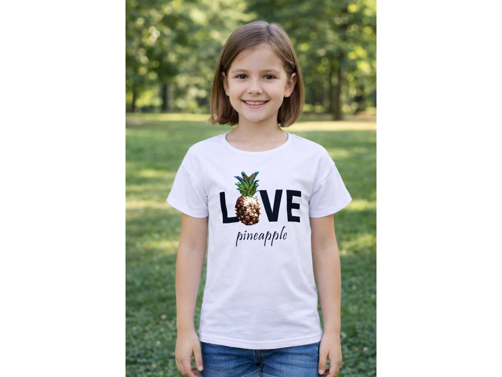 Krásné bavlněné tričko pro slečny s měnícími flitry. Tričko je velmi pohodlné, vhodné k nošení na doma i do školy.