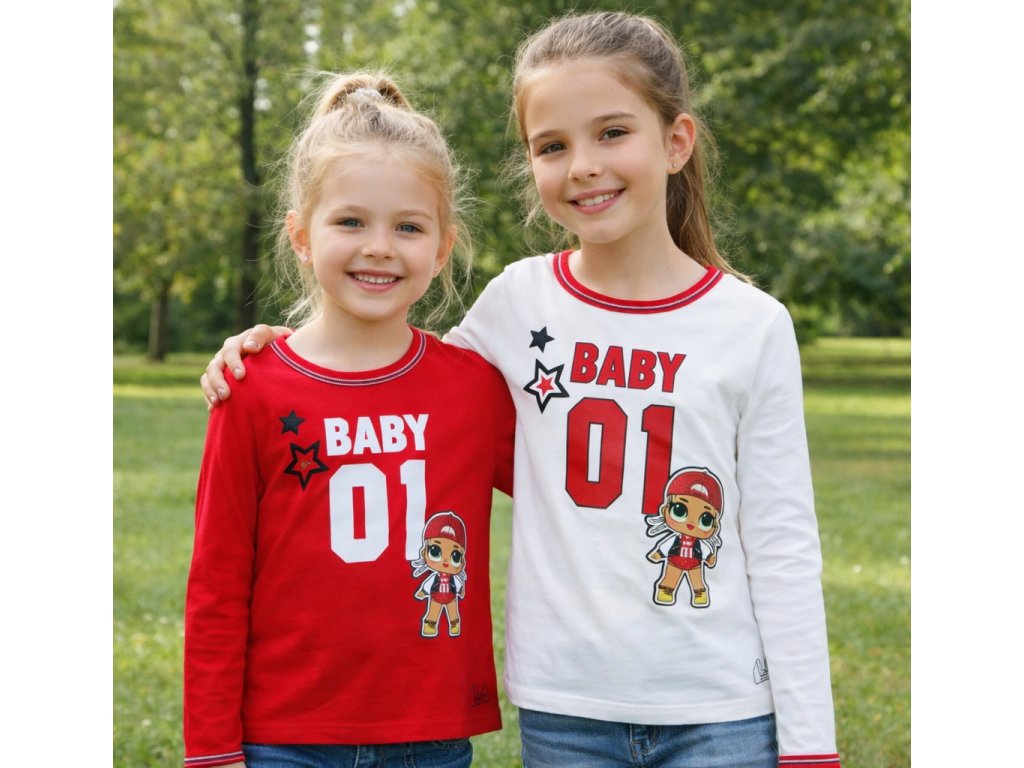 Velmi povedené dívčí tričko, které si holky okamžitě zamilují. Motiv panenky LOL doplňuje krásný plyšový nápis BABY 01 a jemné třpytivé detaily. Tričko je vyrobené z kvalitní bavlny, takže je příjemné na nošení a šetrné k jemné dětské pokožce.