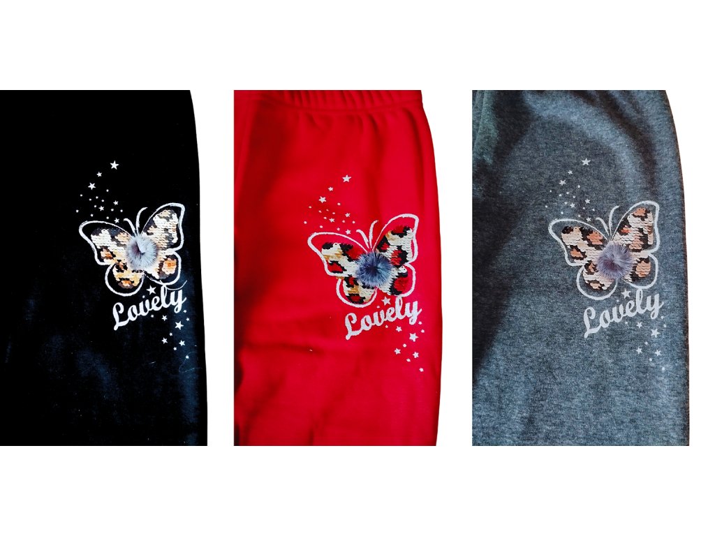 Zateplené legíny pro velké holky jsou pohodlné a pružné, s krásným motivem motýla vytvořeným z flitrů a chlupatinky a doplněným třpytkami. Ideální jsou do chladného počasí – uvnitř mají heboučký hřejivý chlup. Pružná guma v pase zajišťuje pohodlné nošení.