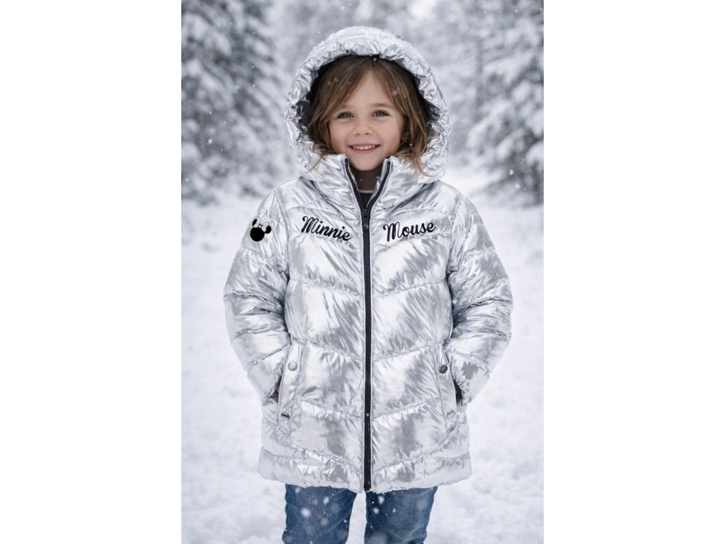 Dívčí zimní bunda metalická stříbrná