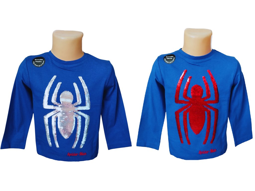 Tričko s dlouhým rukávem a měnícími se flitry pro akční kluky. Na přední straně se leskne parádní motiv pavouka – podle nálady se promění ze stříbrného pavouka na červeného bojovníka! Tričko s motivem Spidermana je vyrobeno z kvalitní bavlny, velmi příjemné na dotek a vhodné pro všechny běžné dětské aktivity.