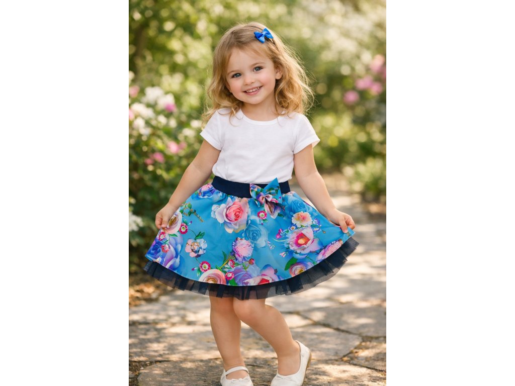 Překrásná sukně s motivem kytek. Vrchní díl tvoří silnější guma přizdobena mašlí, spodní díl je zakončen tylem.