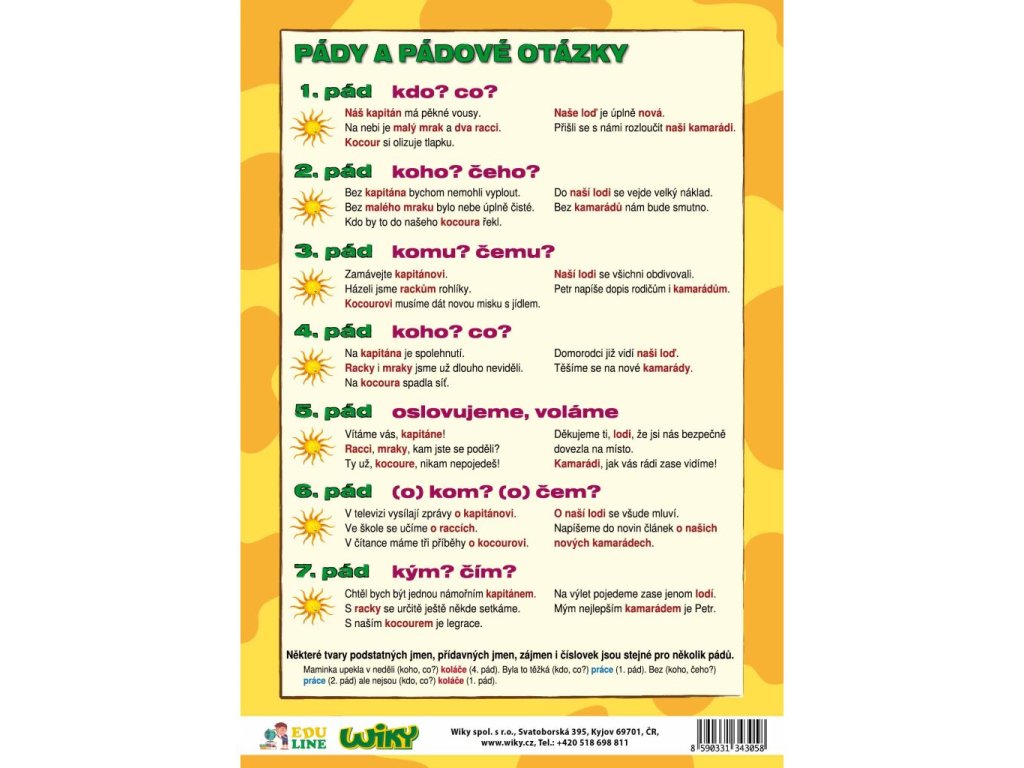 Didaktická pomůcka, která pomůže zvládnout učivo z tvarosloví našim školákům. Přehledné příklady na lamino kartě.