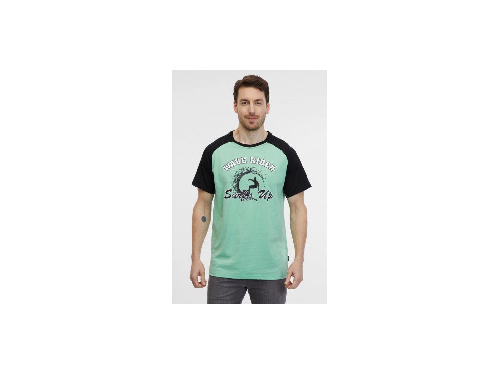 Triko má výrazný potisk surfaře.
