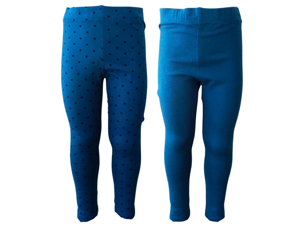 Krásné legíny pro holčičky v praktickém balení po 2 kusech. Vyrobené z příjemné bavlny s přídavkem elastanu, jsou perfektně pružné, nikde neškrtí a pas je pohodlný. V balení najdete jeden kus s puntíkovým motivem a druhý jednobarevný, takže je snadno zkombinujete se sukní i šaty. Výhodné a praktické balení, které ocení každá malá parádnice.