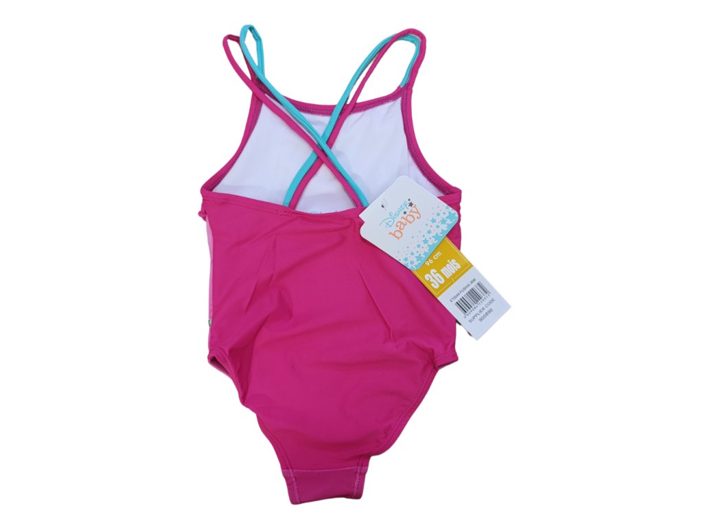 Plavky pro nejmenší s motivem myšky Minnie. Vynikají krásnou sytě růžovou barvou a zadní díl je řešen překříženými ramínky, díky čemuž plavky při koupání pevně drží na místě.