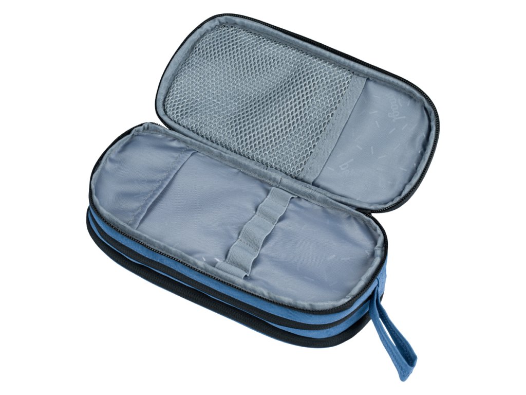 Penál se třemi komorami na zipy YKK, pevný materiál, přehledné vnitřní členění, poutko na nošení.