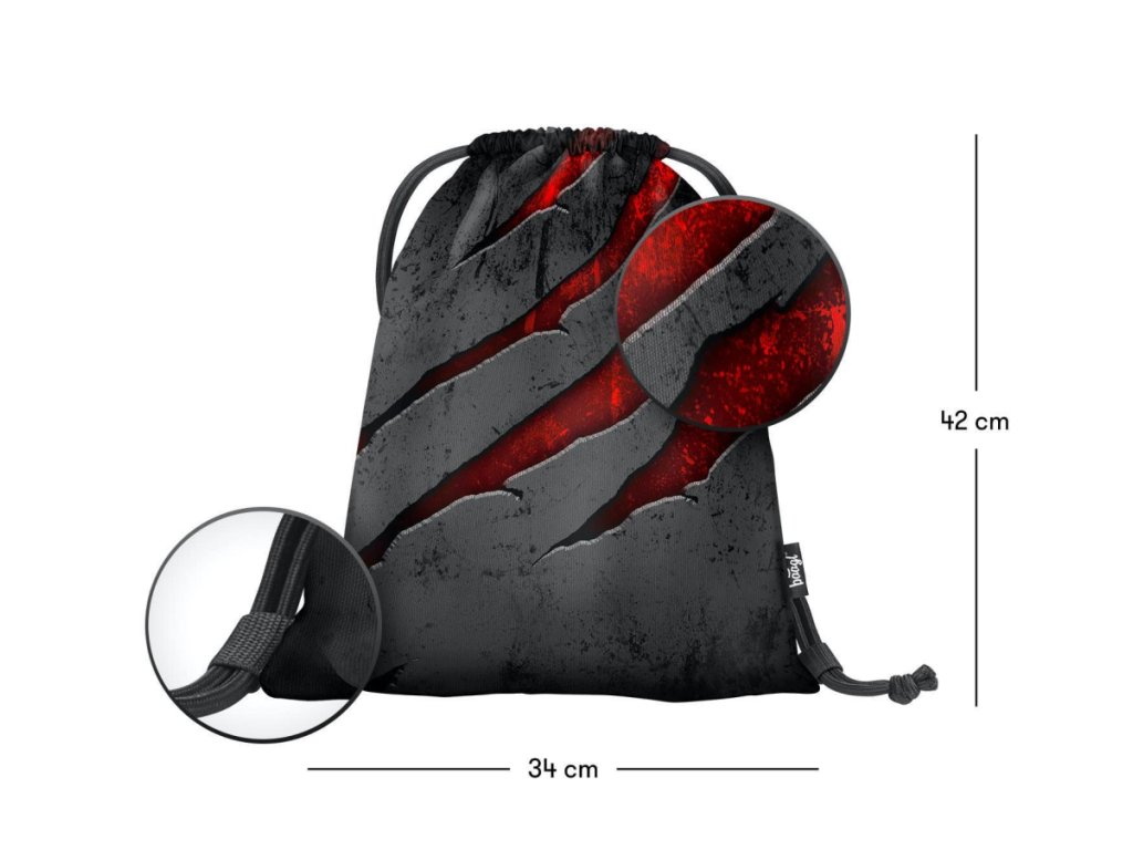 Praktický sáček na přezůvky nebo cvičky z pevného omyvatelného materiálu. Stahování pomocí tkanic umožňuje nošení na zádech.
