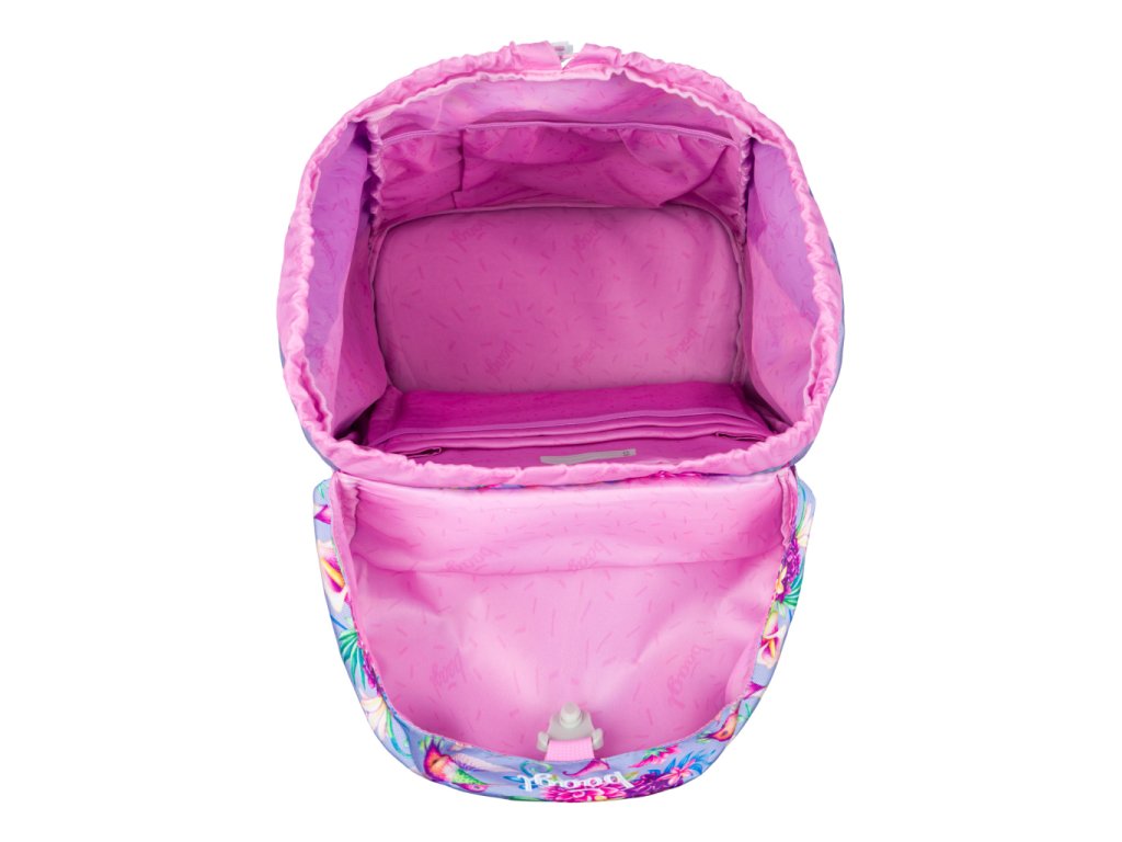 Batoh nabízí jednokomorové uspořádání, kapsu na desky, přední kapsu na zip a odolné boční kapsy na láhev. Magnetické zapínání zvládne ovládat i prvňáček. Voděodolný materiál a reflexní prvky zvyšují bezpečnost.