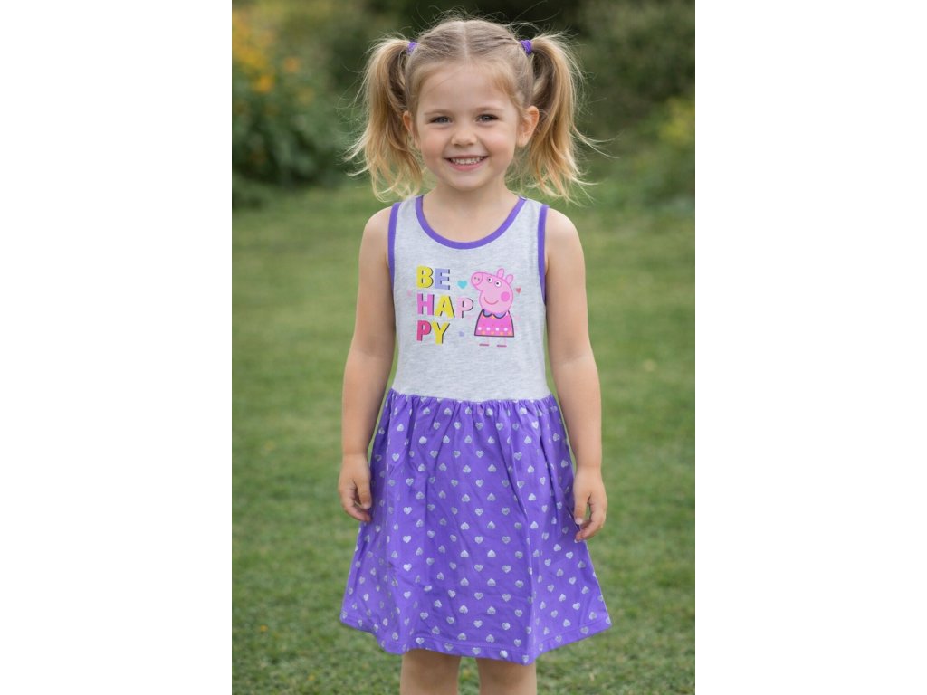Dívčí letní šaty Peppa Pig v jemné fialové barvě jsou skvělou volbou pro horké letní dny. Tyto krásné a slušivé šaty potěší každou malou fanynku oblíbené pohádkové postavičky a díky pohodlnému střihu jsou ideální na běžné nošení, do školky, na hřiště i na rodinné výlety.
