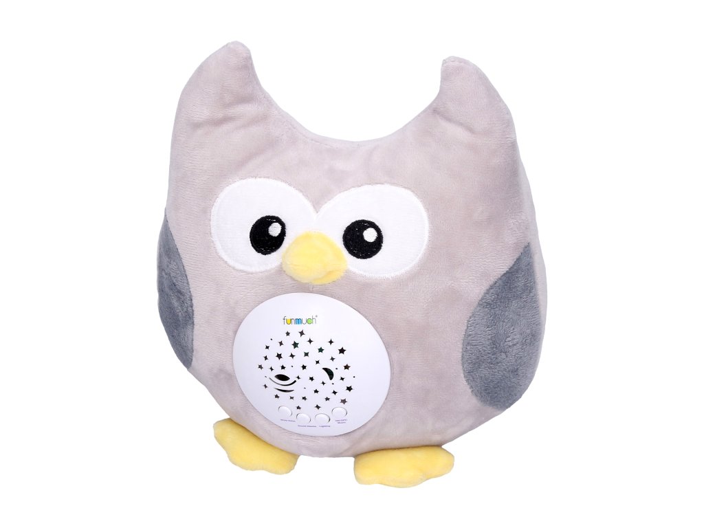Plyšová sovička pomůže vašemu miminku usnout za zvuku příjemné melodie nebo šumění. Projektor na bříšku sovičky promění pokojík v noční oblohu plnou hvězd a barev. Doporučený věk: od narození