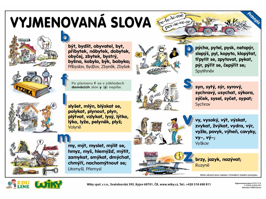 Didaktická pomůcka, jejíž podstatnou složku tvoří ilustrace, přispívá k lepšímu osvojení celého souboru slov, ale zejména k pochopení významu všech vyjmenovaných slov. To následně vede ke snadnějšímu zapamatování si pravopisu nejen uvedených slov, ale i slov odvozených a příbuzných. Naučná tabulka má napomoci tomu, aby se vyjmenovaná slova stala zábavným tématem, nikoli postrachem, protože je třeba prostě si je mechanicky „natlouct“ do hlavy. Druhá strana tabulky obsahuje Slovní druhy.